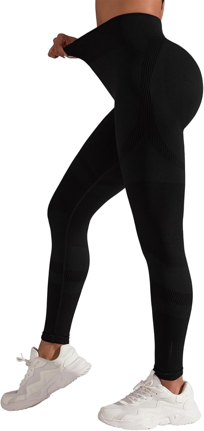 - High Waisted Butt Lifting Leggings Design:The high waist tummy-tightening design is not easy to fall off,does not pill,and has no camel toe.The fabric is soft and skin-friendly,opaque,sweat-absorbent and breathable.This seamless leggings has hidden pleats on the back to enhance the hip-lifting effect,suitable for your daily exercise and daily wear.