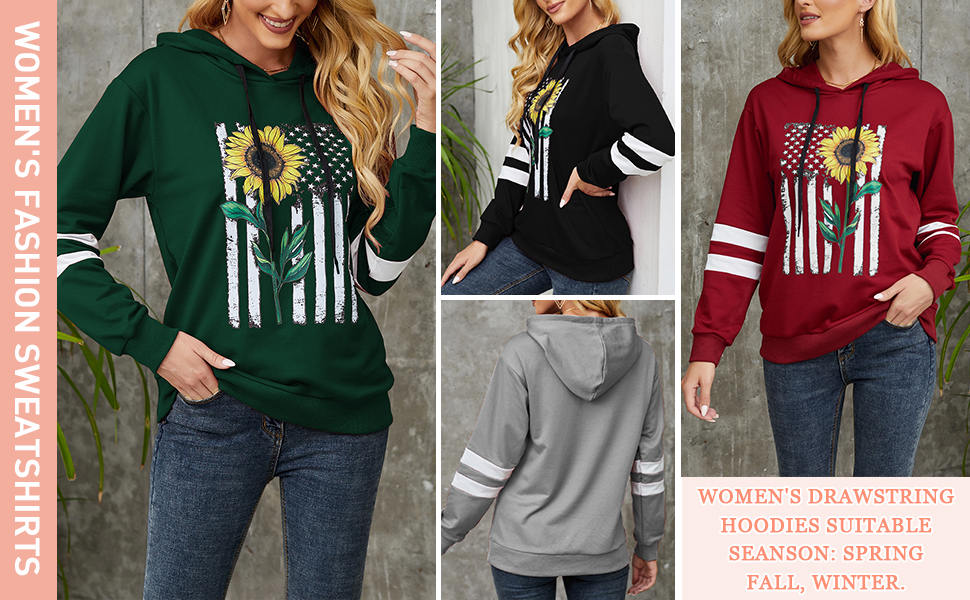 - 【Occasion】This casual sunflower loose long sleeve hoodies sweatshirts is perfect for spring,fall,winter,work,school,sport,date,home,party,holiday.For spring, fall and winter.